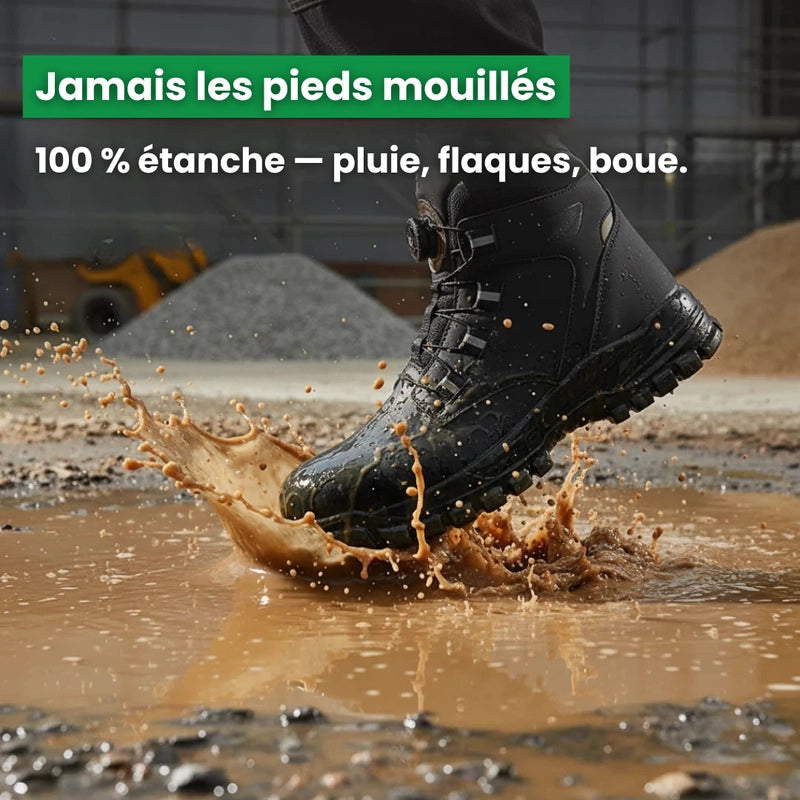 Oui! Sa conception étanche et sa semelle antidérapante vous garantissent une adhérence et une protection supérieures, peu importe la pluie, la boue ou le terrain glissant.